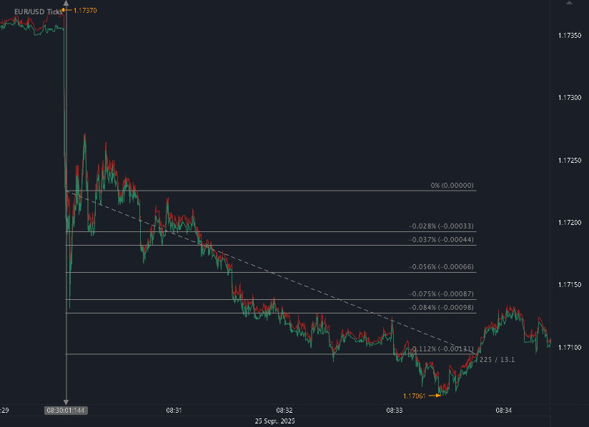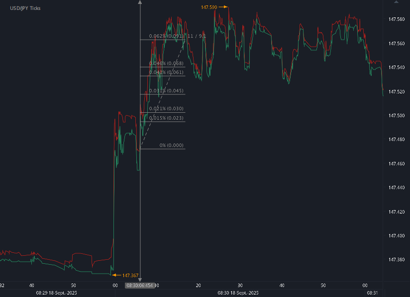A dual release that shook risk assets: 64 pips in FX, 14 points in US500, with crypto also under pressure.US Jobless Claims – 18 September