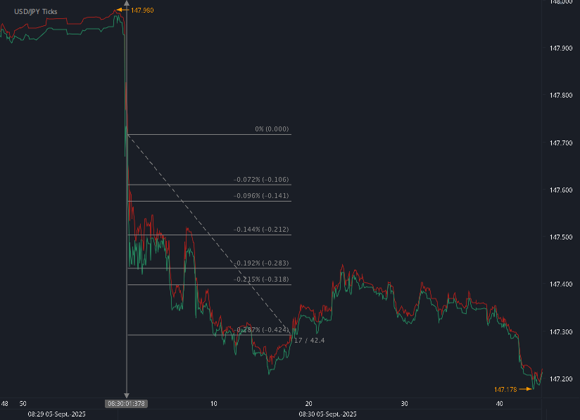 US Employment Situation (Non-farm payrolls / NFP) (68 pips, BTC 306 points / 5 September 2025)
