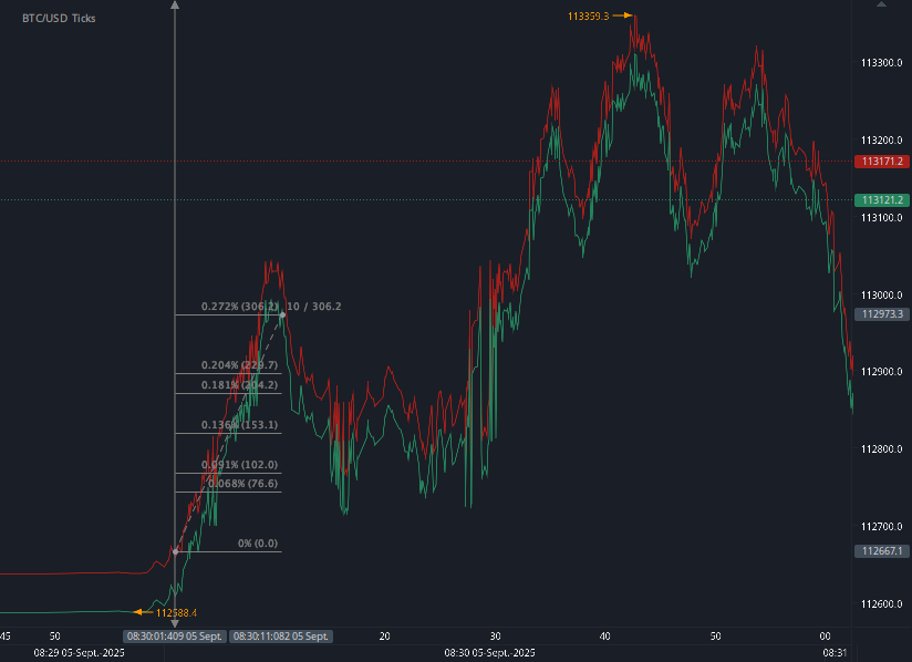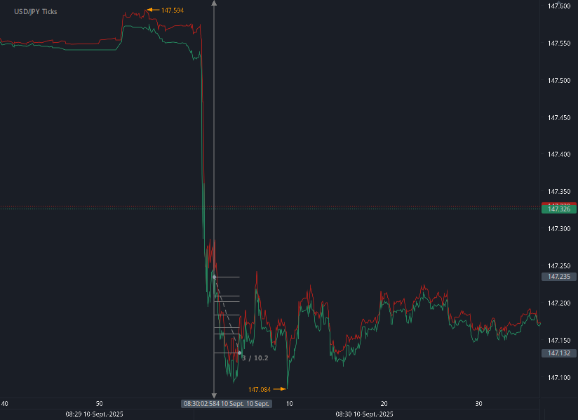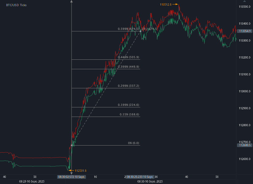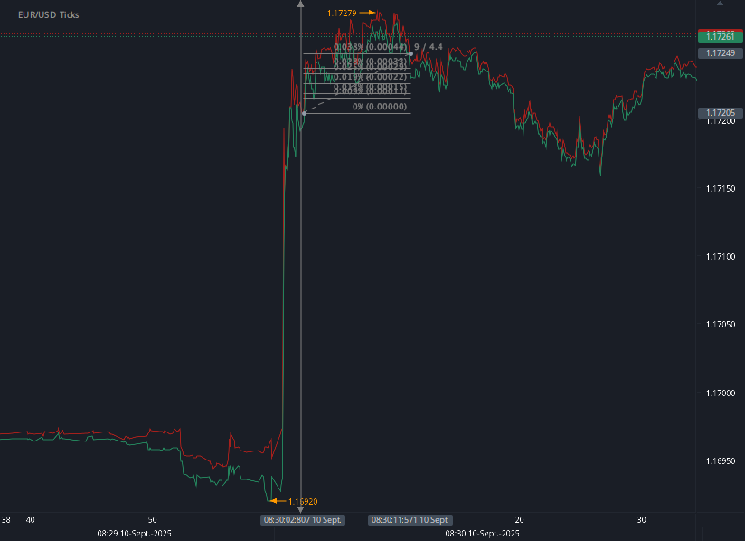 An outsized reaction this time: 14 pips in FX but a massive 674-point swing in BTC.US CPI & Jobless Claims – 11 September